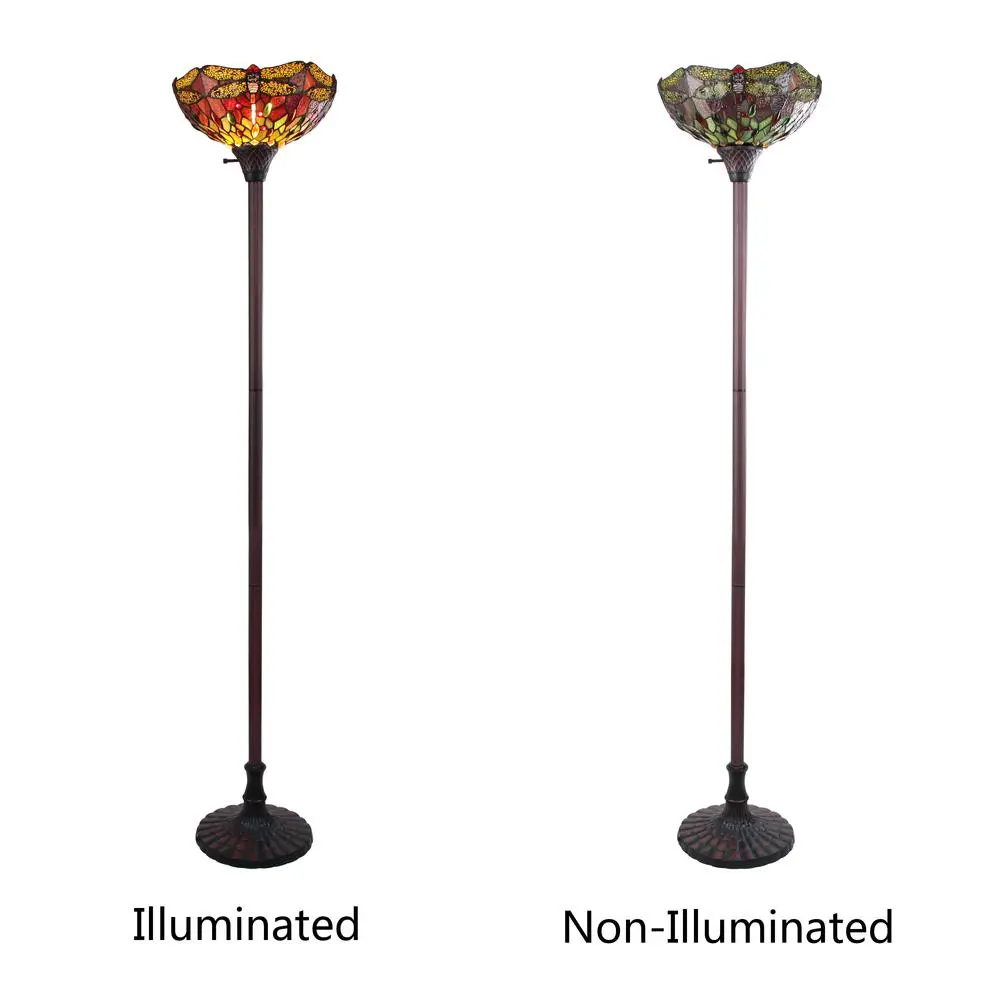 CHLOE Lighting EMPRESS Dragonfly Tiffany-style Dark Bronze 1 Light Torchiere Lamp 14″ Wide