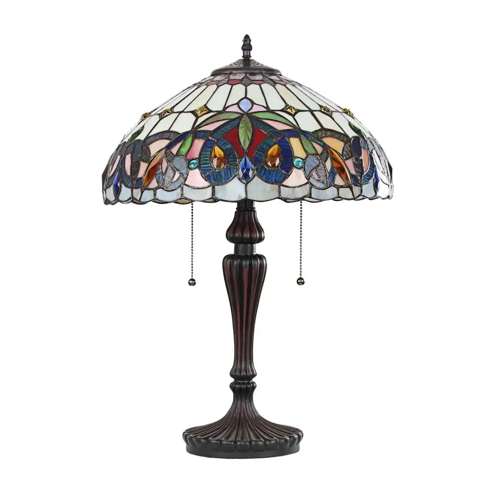 CHLOE Lighting SERENITY Victorian Tiffany-style Dark Bronze 2 Light Table Lamp 16″ Wide