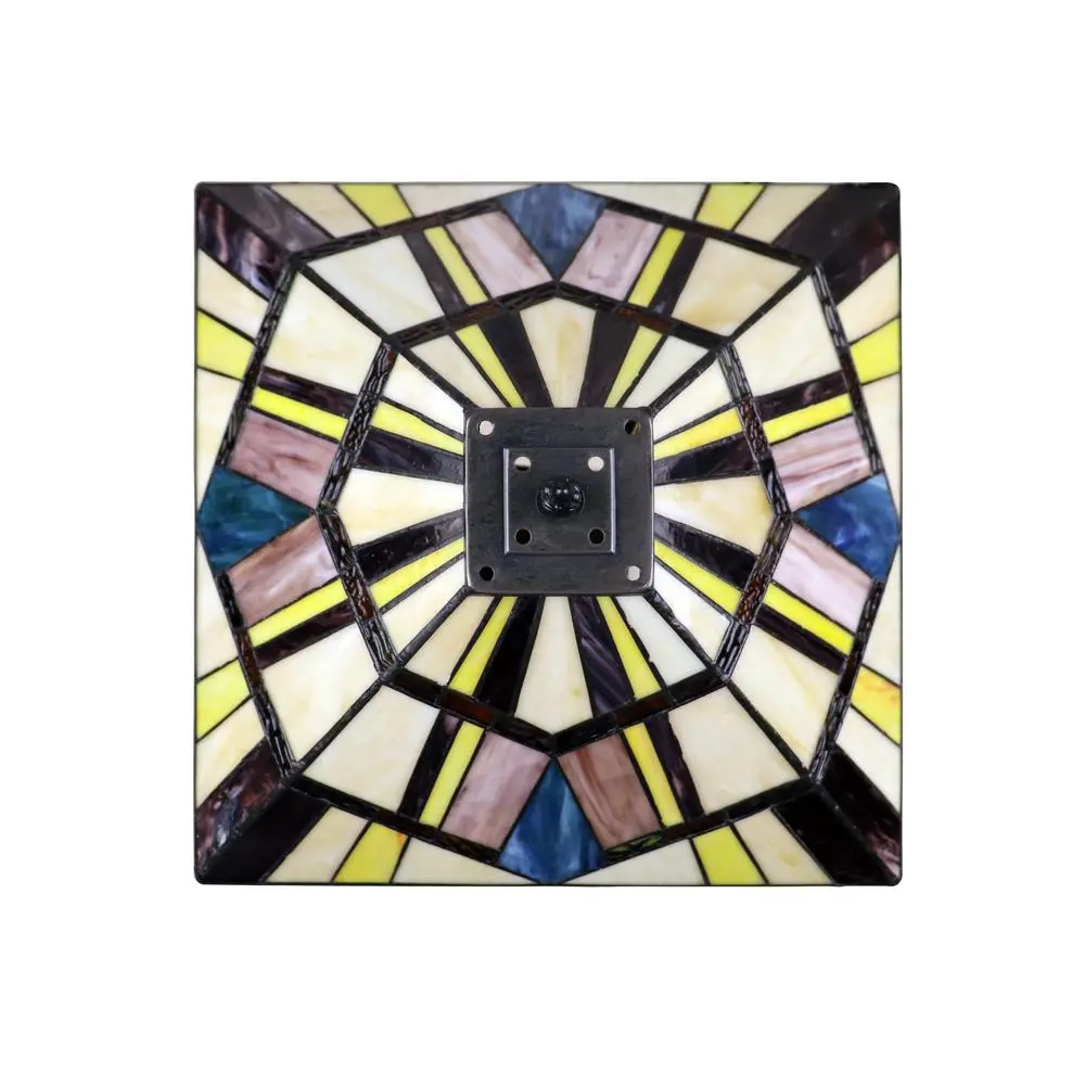 Vincent is a beautiful, stained glass double-lit table lamp in a traditional Mission style, featuring a stained glass base, 2 pull chains, and an on-cord rotary switch. This lamp would be perfect in a bedroom, living room, and dining room. The shade is hand-crafted, using the same methods developed by Louis Comfort Tiffany in the early 1900’s. This process entails using 256 hand cut stained art glass pieces, each wrapped in fine copper foil and soldered together at extremely high temperatures to form each unique piece. Exact size to the nearest inch may vary, and exact color of each glass piece may vary due to each piece being hand crafted. First image is with the light shining through, second image is with no light. Dry listed and recommended for an indoor setting.