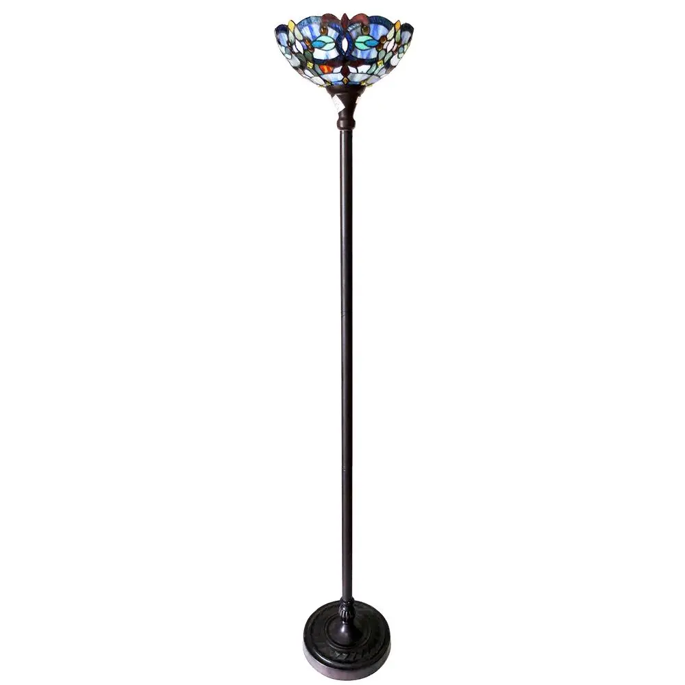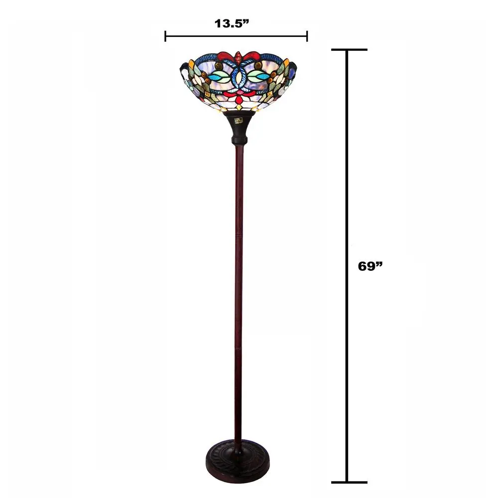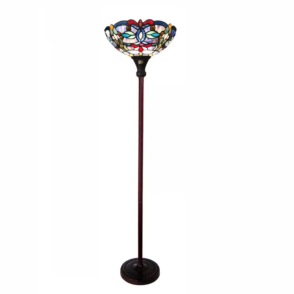 CHLOE Lighting VIVIAN Tiffany-Style Victorian Stained Glass Torchiere Floor Lamp 69″ Height