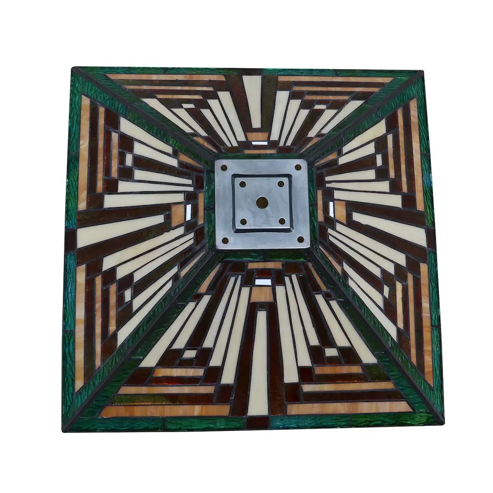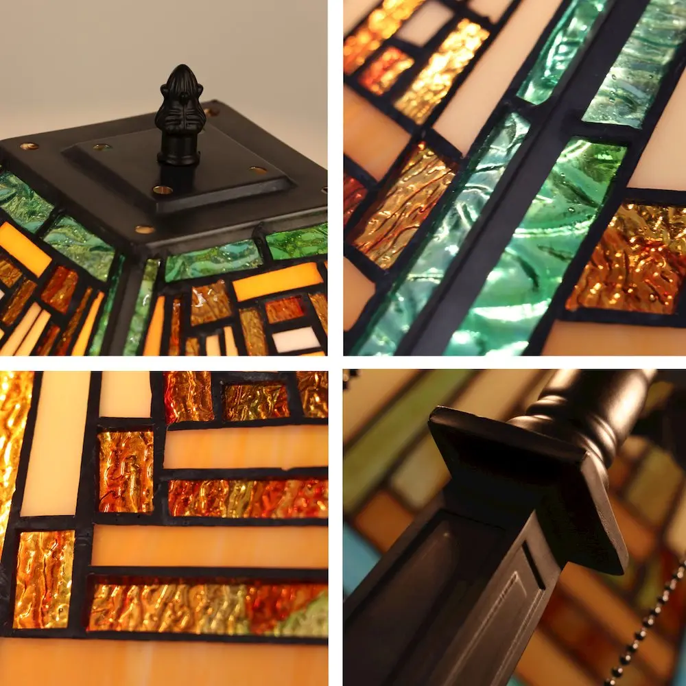 Firman is a stunning 2 light table lamp, featuring a beautiful mission shade. This piece would be perfect by a bed or in a foyer. Each shade is hand-crafted, using the same methods developed by Louis Comfort Tiffany in the early 1900’s. This process entails using 268 hand cut stained art glass pieces, each wrapped in fine copper foil and soldered together at extremely high temperatures to form each unique piece. Exact size to the nearest inch may vary, and exact color of each glass piece may vary due to each piece being hand crafted. First image is with the light shining through, second image is with no light. Dry listed and recommended for an indoor setting.