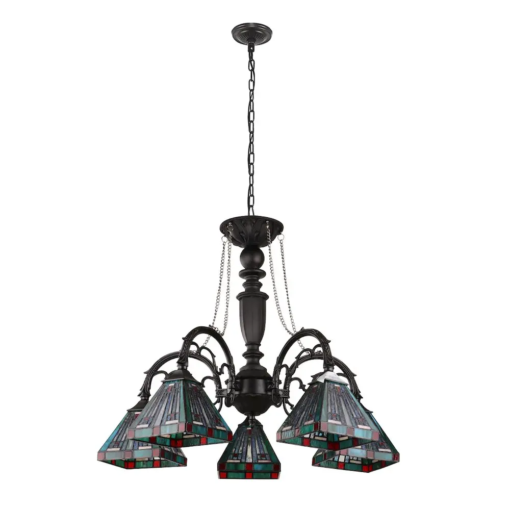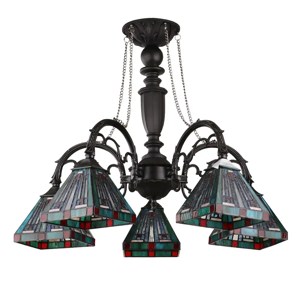Innes Tiffany-Style 5-Light Mission Large Chandelier 27″ Wide