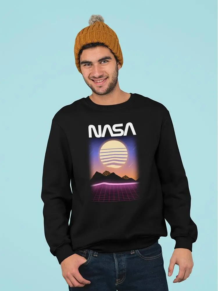 Nasa Retro Sunset And Grid. The Perfect Design For Those Who Love Nasa. Men’s Black Sweatshirt. Design by NASA.