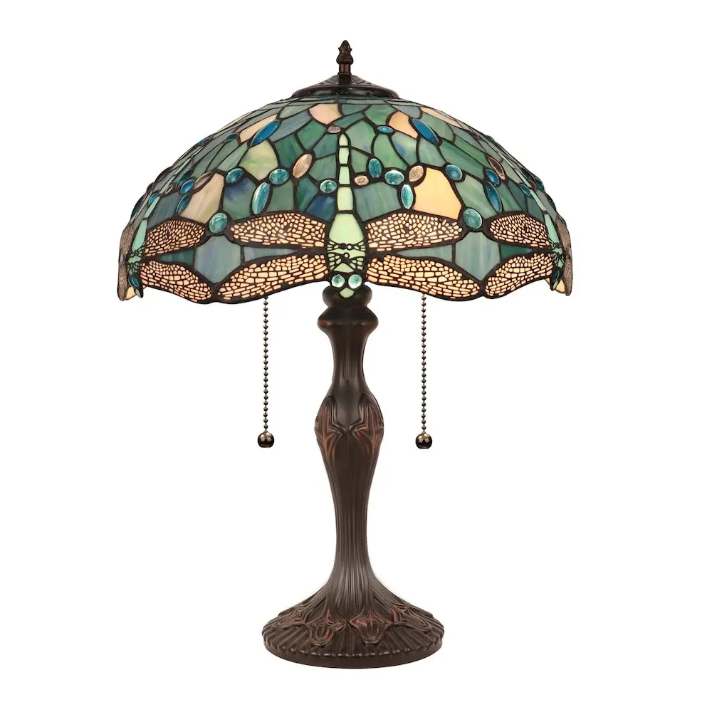 Be the first to review “Sunniva Dragonfly Tiffany-Style 2-Light Table Lamp 16″ Shade”
