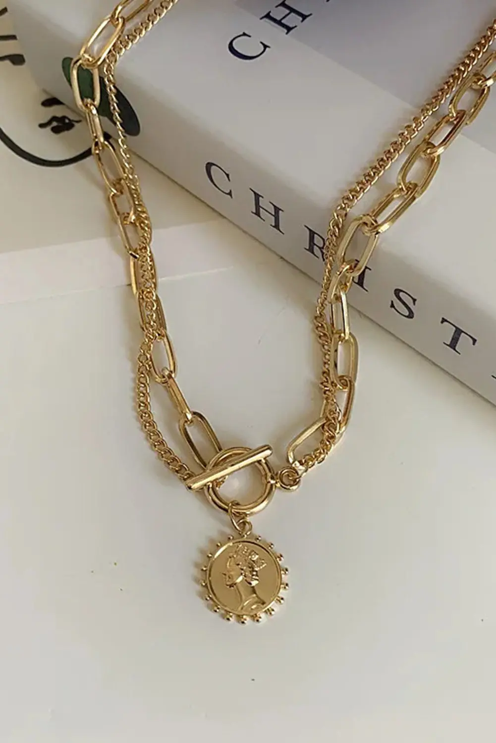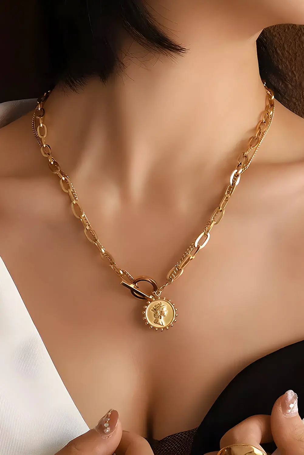 Embrace classic charm with a plated retro look. Catch attention with a carefully crafted coin pendant. Enhance your style with a dainty chain necklace. Crafted from top-notch material for lasting durability.