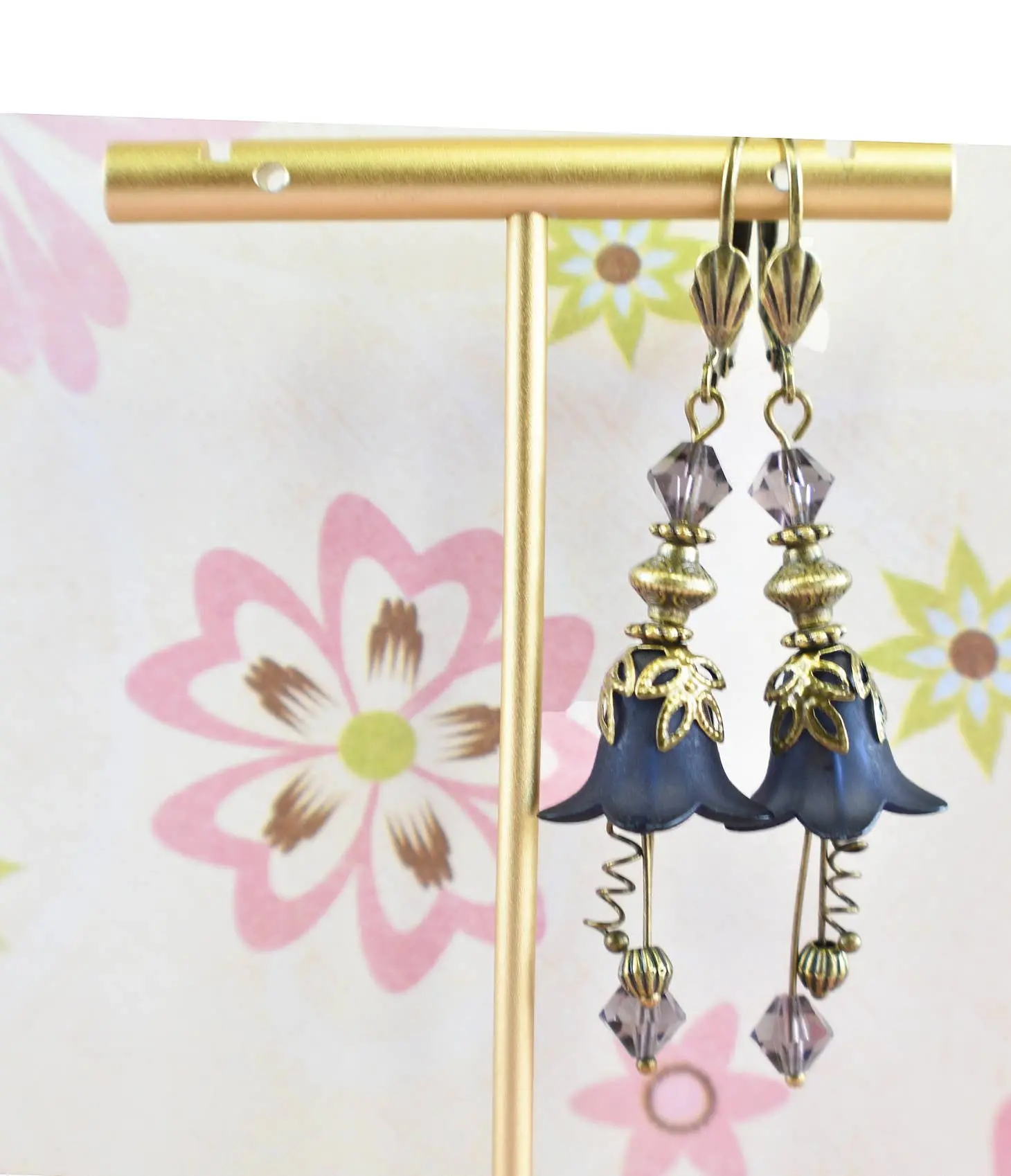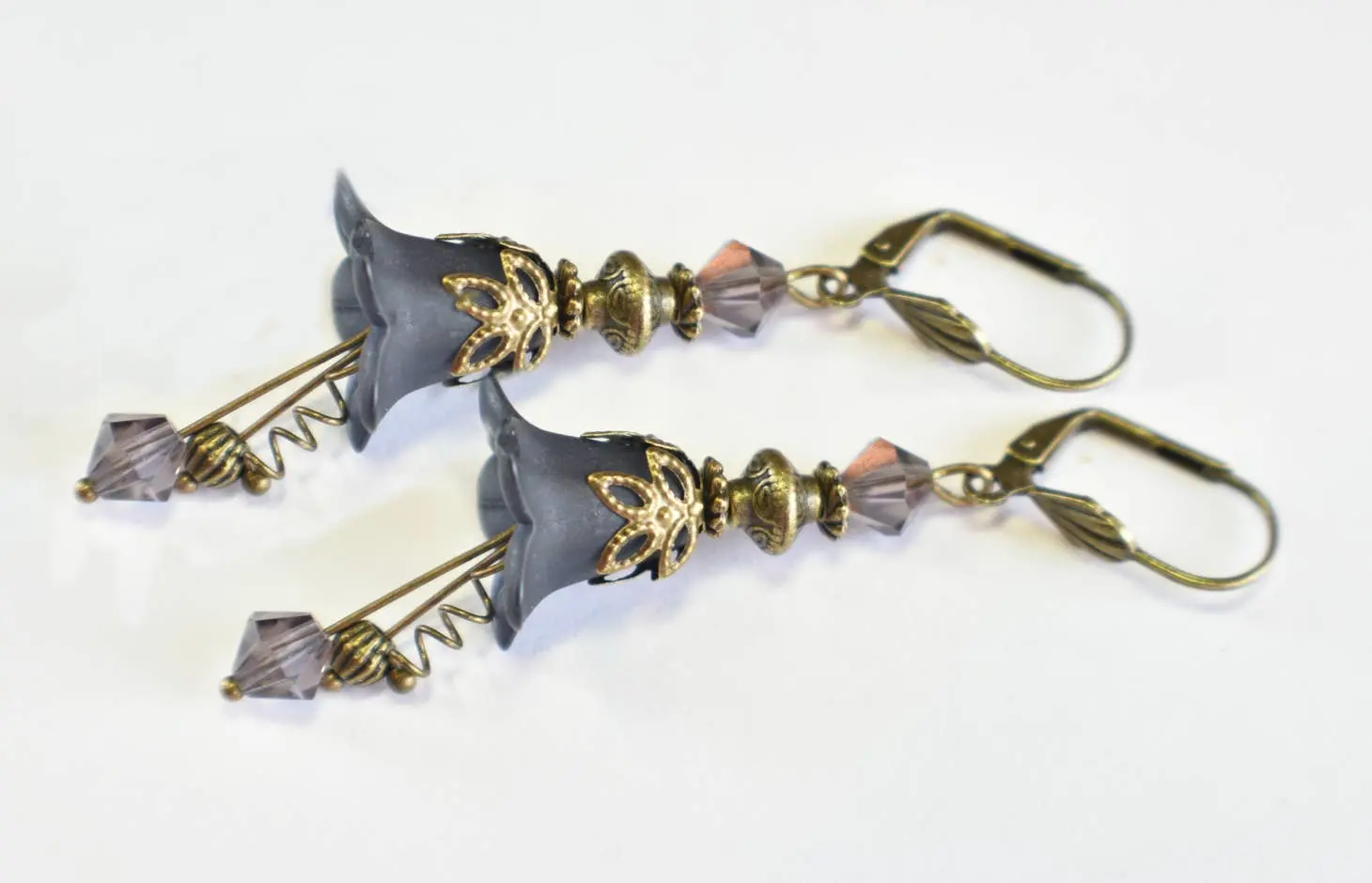 These vintage look flower earrings are so pretty and delicate; really striking. The bold 6mm bicone crystal accents on top and bottom really make them sparkle! This classic look makes these a great bridal party gift or accessory, or a wonderful gift for any occasion. Or just for you … Available in 20 colors.